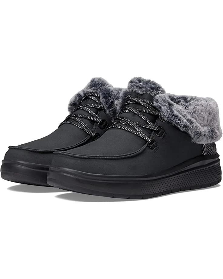 - Walk in the cozy comforts of stylish and unique BOBS from SKECHERS® Skipper Wave sneakers with a faux-fur collar.