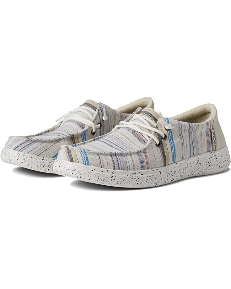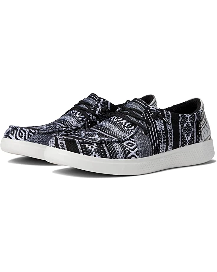 - The BOBS from SKECHERS® Bobs Skipper boat shoe will complement your weekend-ready style with a slip-on construction, knit fabric upper material, and a laced instep panel with knotted ends.