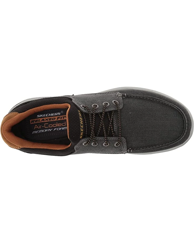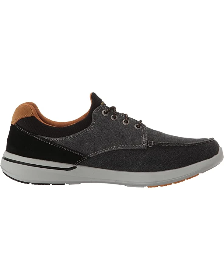 - The SKECHERS® Relaxed Fit®: Elent – Mosen boat shoe will be perfect for your weekend-ready collection with a woven canvas fabric upper, durable synthetic overlays, and premium comfort features.