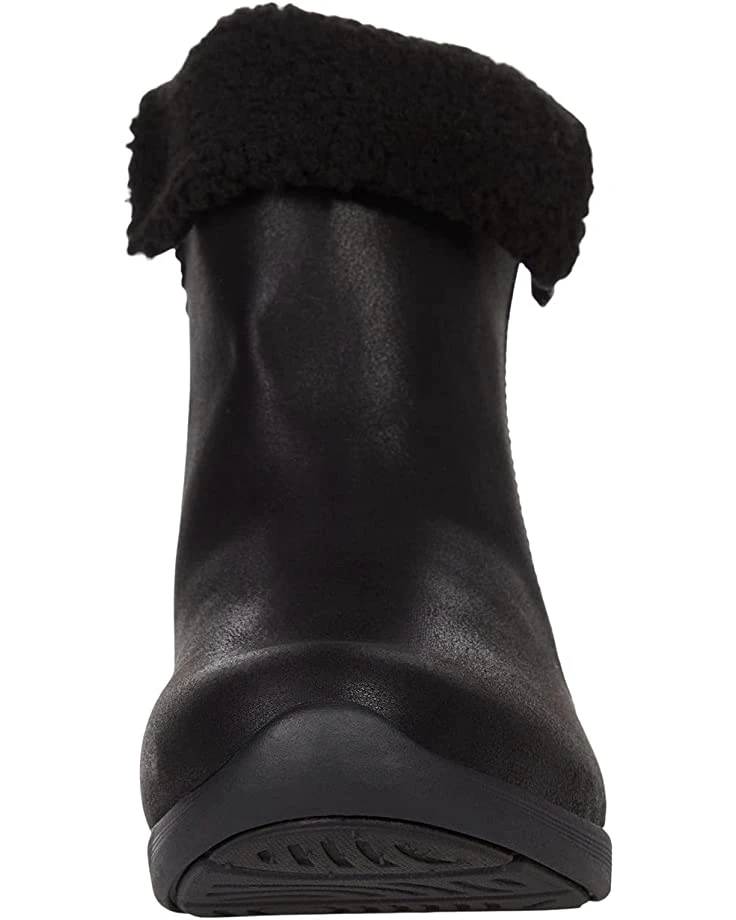 - Pull-on design with outside zip closure, rounded toe, and soft sherpa lining.