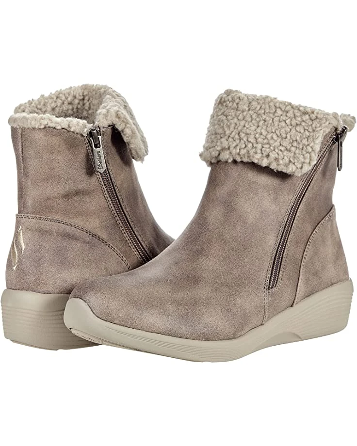 - Give a cold casual day an upgrade with the SKECHERS® Arya – New Rumor, a water-repellant bootie with foldover front collar and wedge sole.