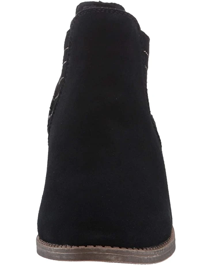 - Stacked block heel features a tapered design.