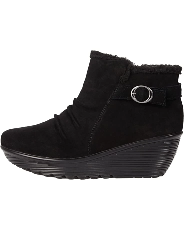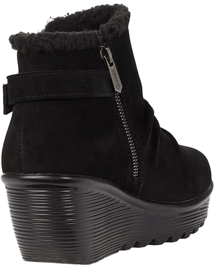 I’ve owned and loved Skechers Parallel boots but they knocked it out of the park with this latest style twist. The front ruching and back strap with buckle are super sharp. I love the slightly-higher-than-basic ankle shaft, and the height is perfect. So versatile!