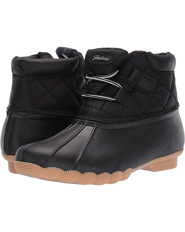 - With comfort features, a mixed texture finish, and a duck boot silhouette, the SKECHERS® Pond boot is a must-have style for the cold-weather season.