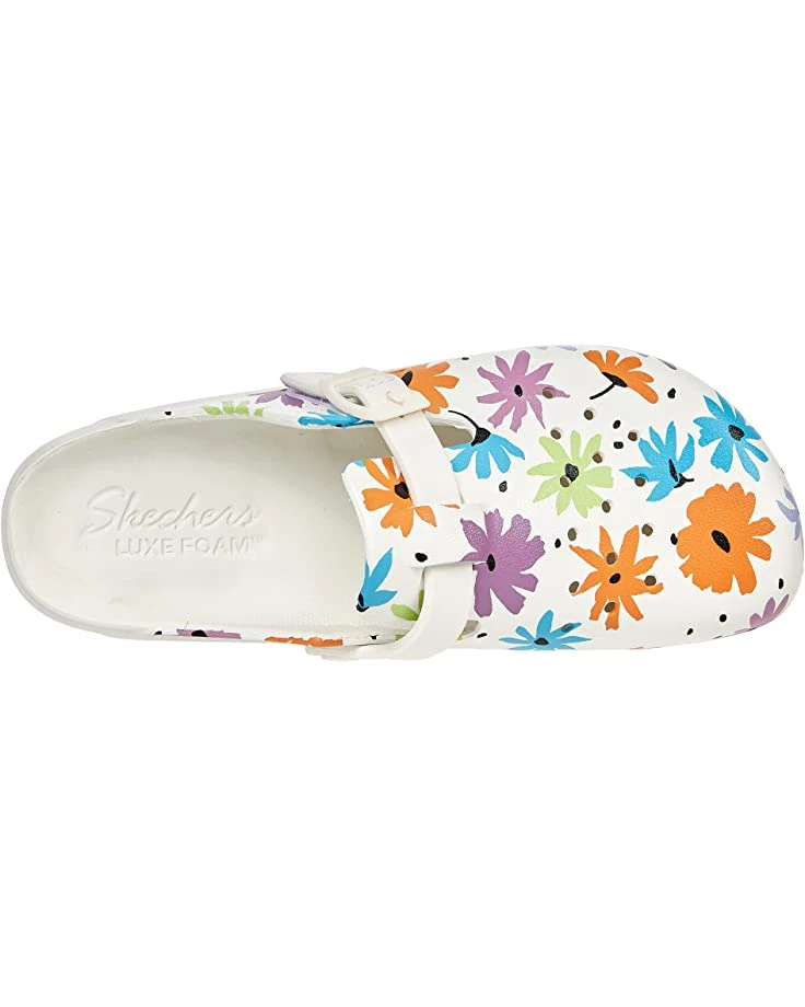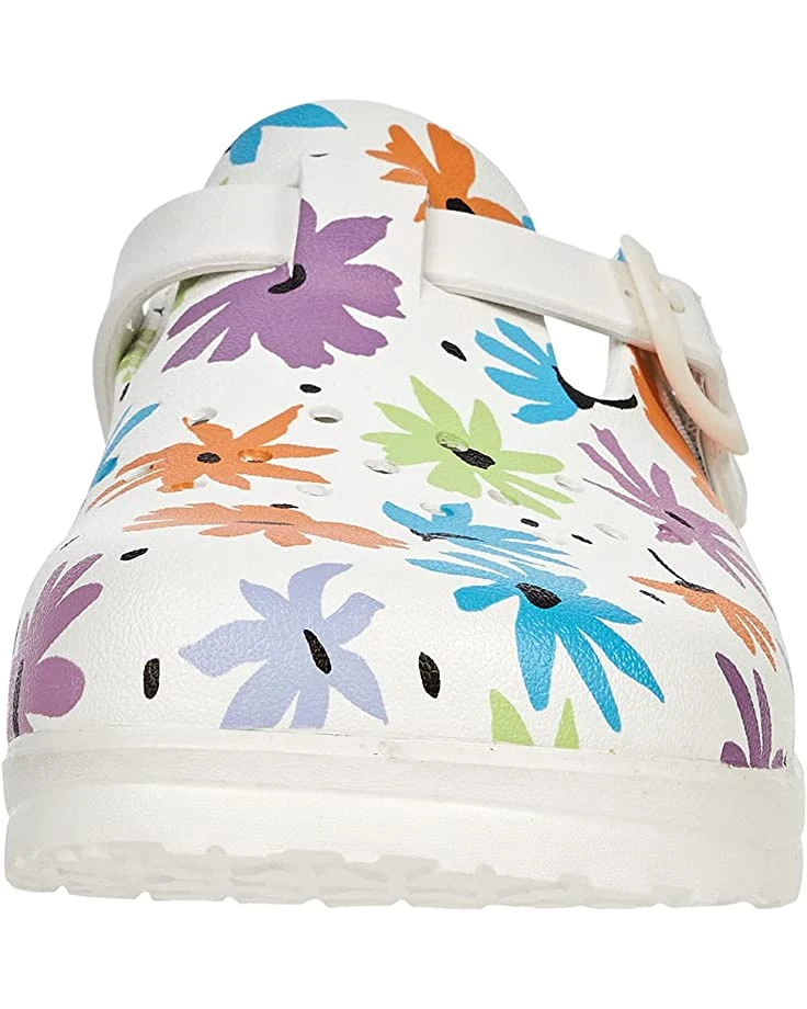 - Sculpted in a comfort slip-on style clog with an adjustable buckle vamp strap for easy on and off.
