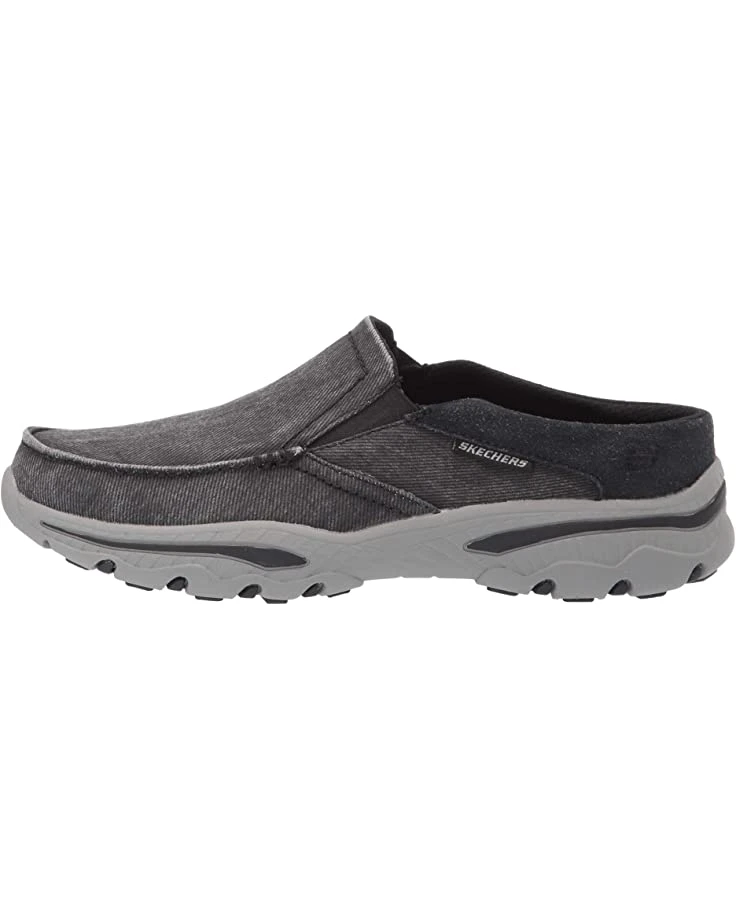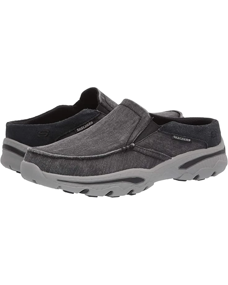 - The SKECHERS® Relaxed Fit Creston – Backlot mule will refine your casual look with a low-backed design, vintage-inspired canvas fabric upper, and easy slip-on construction.