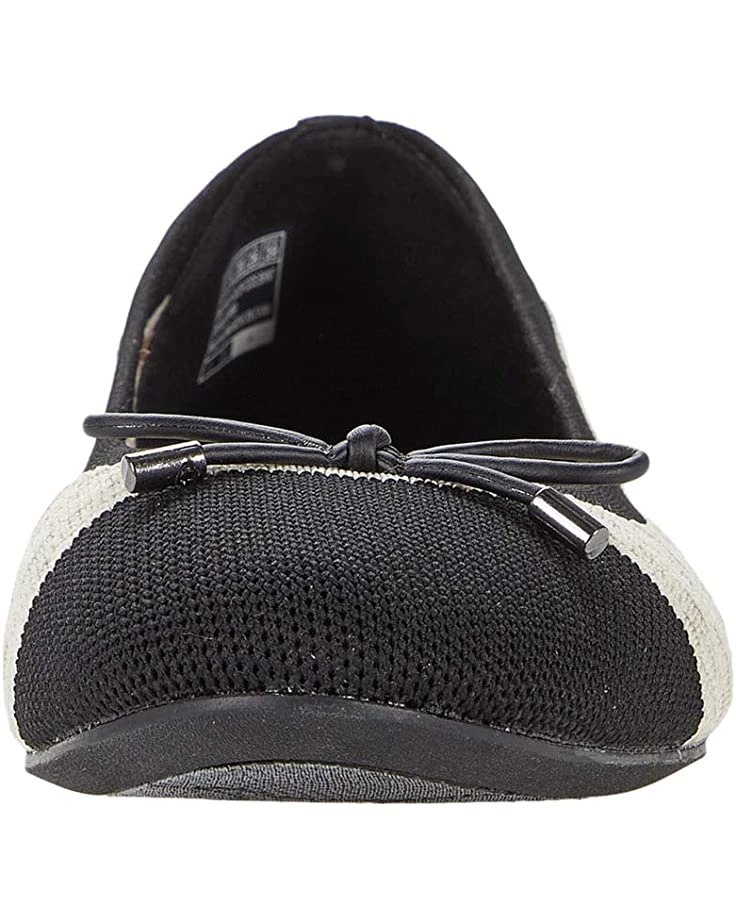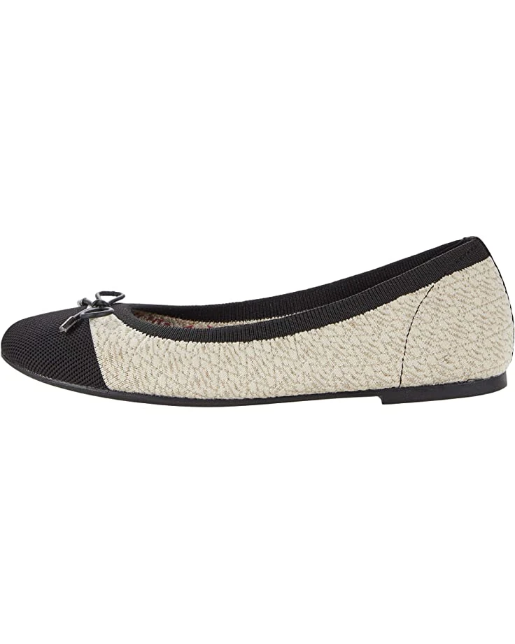- Slip-on style ballet flat with ribbed foot collar and rounded color contrast toe box and heel counter.