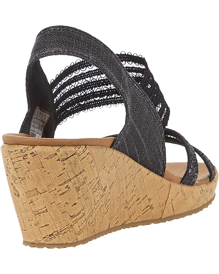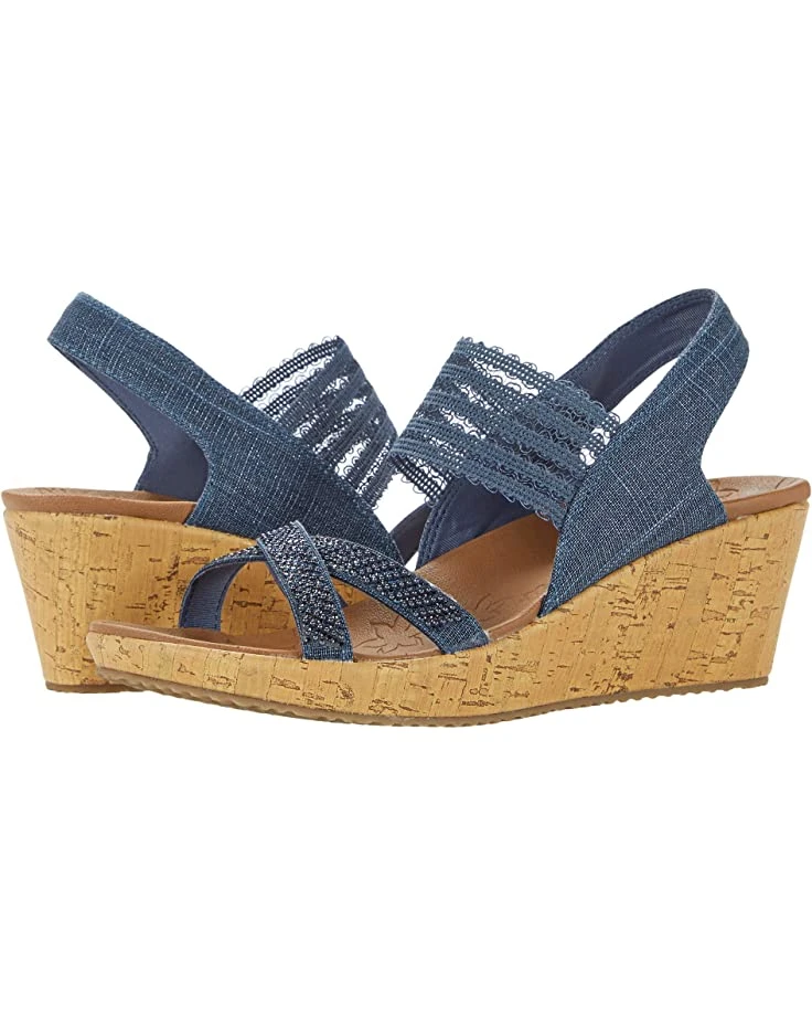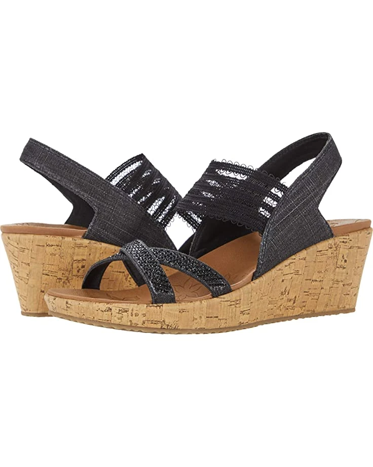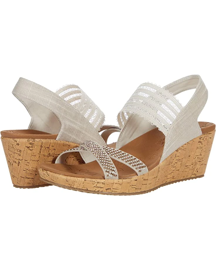 - The SKECHERS® Beverlee features a Luxe Foam™ footbed for lightweight cushioning and an elastic gore on the instep strap for added stretch. Mini beads decorate the criss-cross toe straps.