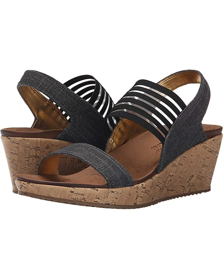 - The SKECHERS® Cali – Beverlee – Smitten Kitten sandal will accentuate your trendsetting style with linen fabric and mesh upper material, an open toe, and a subtle metallic finish.