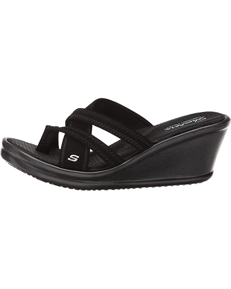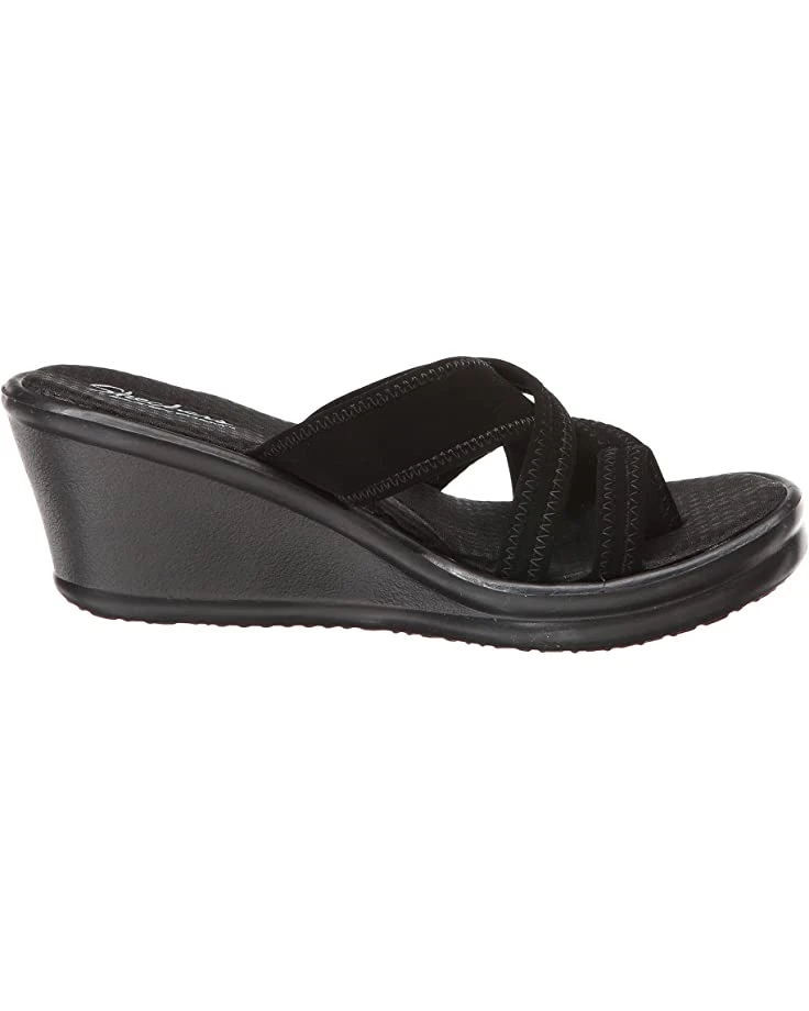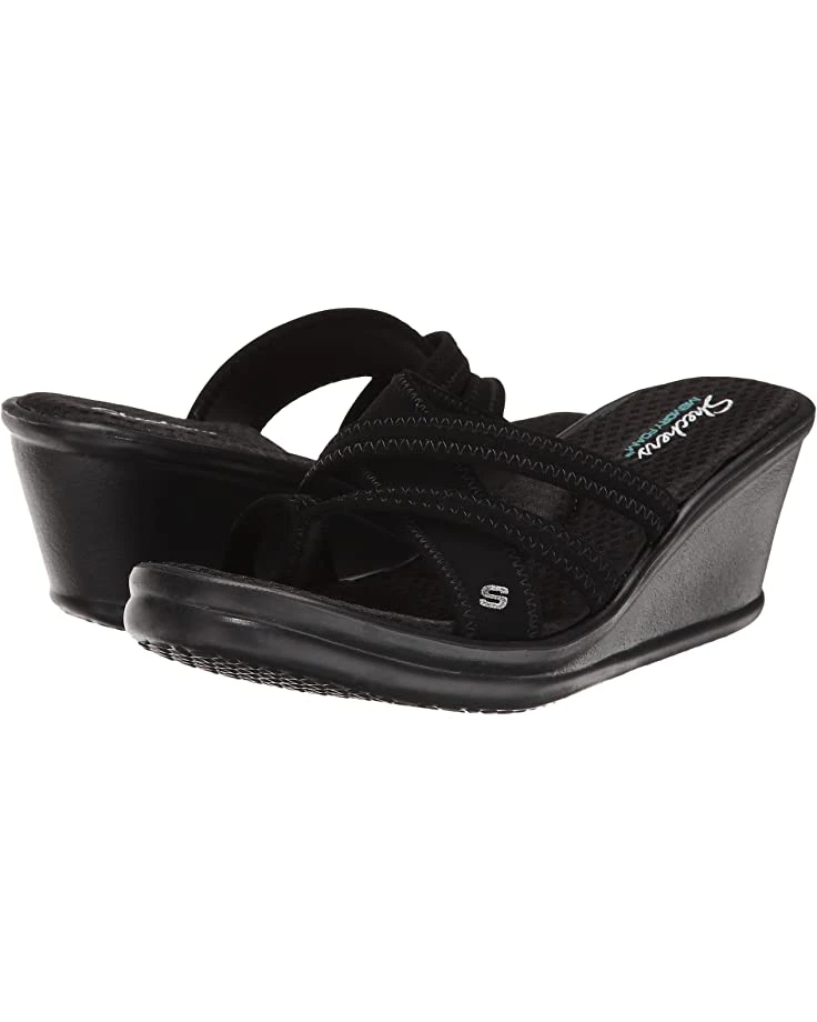 - The SKECHERS® Rumblers Young At Heart sandal lends modern charm to a timeless design with crisscrossing instep straps, a center thong post, and wedge heel.