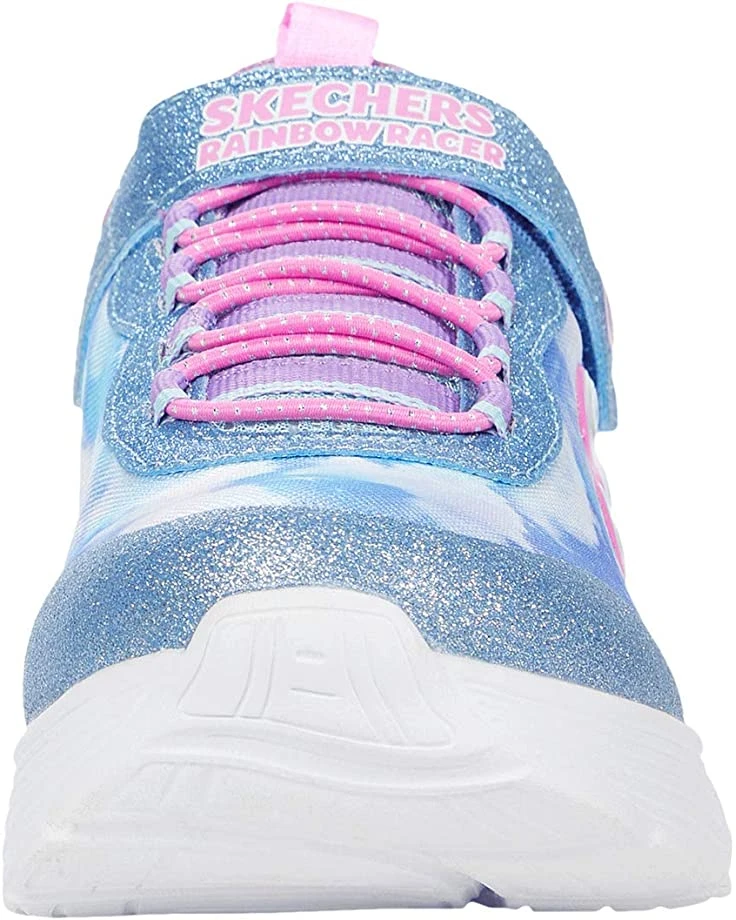 - She’ll be walking on sunshine in the radiant SKECHERS KIDS® Sport Lighted-Rainbow Racer 302300L sneakers. These kids sneakers are crafted from sporty woven mesh fabric upper with cloud print design throughout and a bungee lace-up vamp with an easy to use hook-and-loop closure strap.