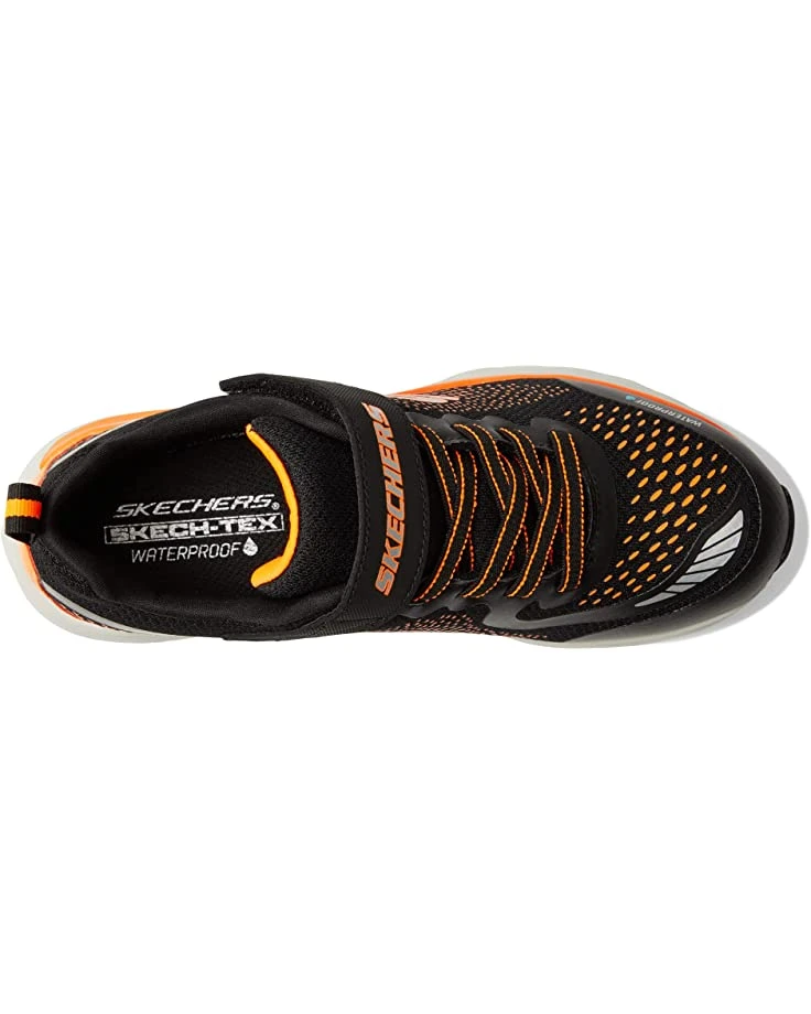 If you’re looking for a completely waterproof shoes I’d try another style. The black Sketchers he’s worn for almost a year were fantastic, but too small now and sold out in his size.