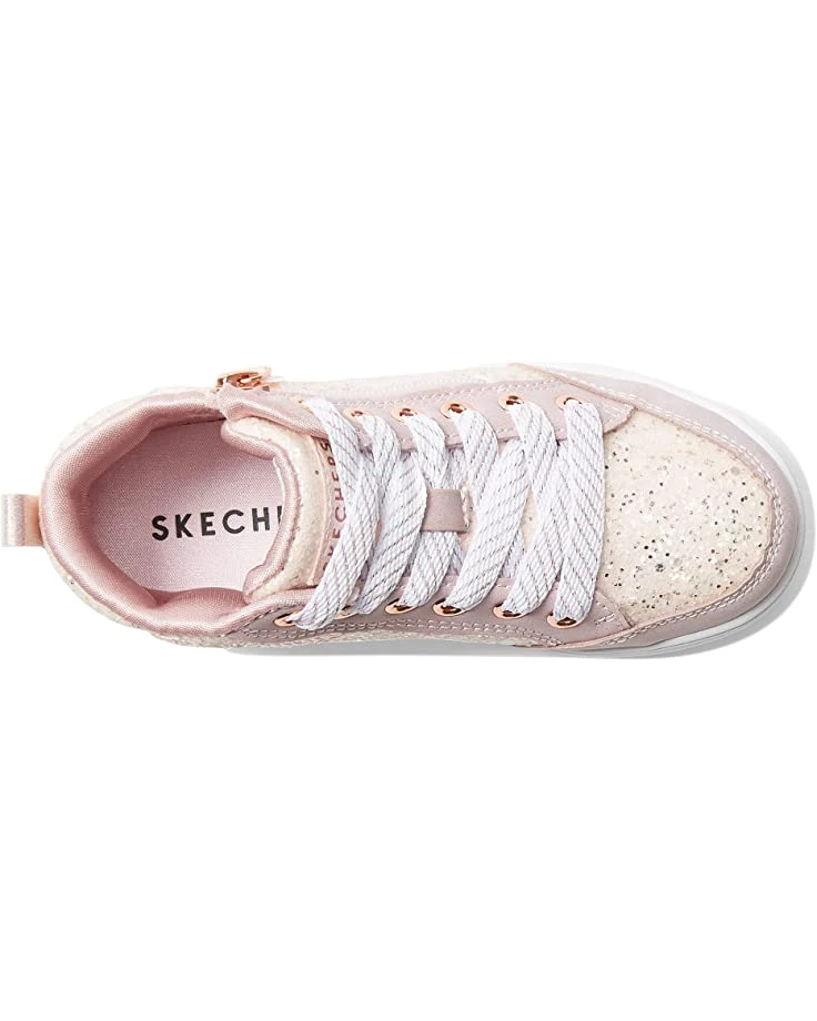 - Add some glitz and glamor to your junior’s casual day look with the SKECHERS® KIDS Street – Shoutouts 2.0-Glitter Steps 310647L Sneakers.