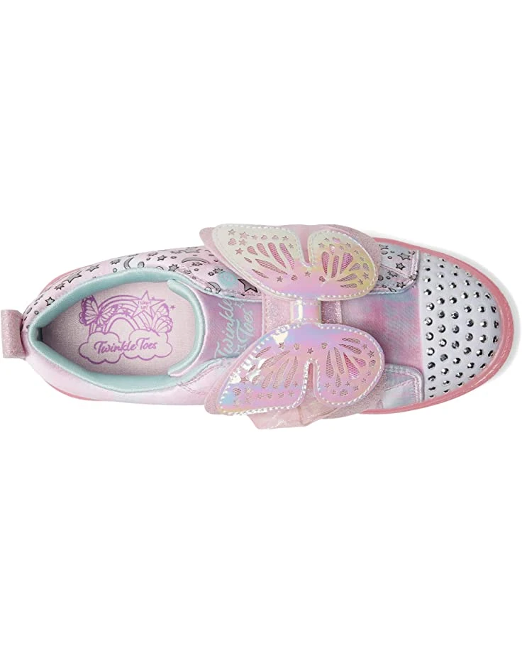 - Highlighting a celestial print with glittery rhinestone accents on the toe and an embossed butterfly on the hook-and-loop strap, the SKECHERS® KIDS Twinkle Toes – Shuffle Brights 314270L Sneakers are enough to make your little one the showstopper.