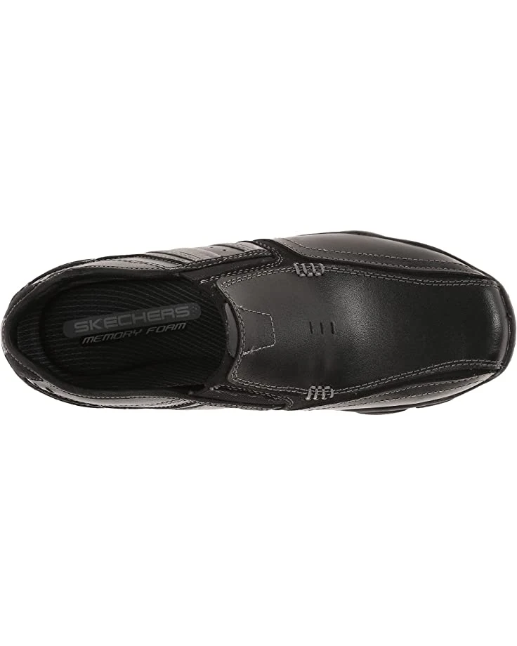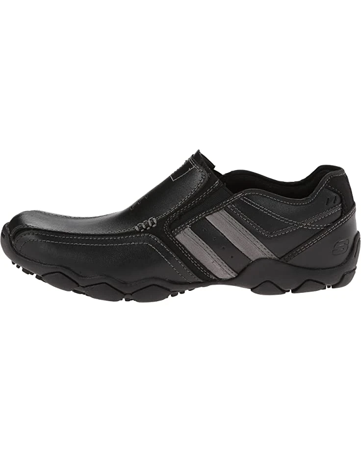 - The SKECHERS® Classic Fit Diameter – Zinroy loafer will give your casual look a modern update with a smooth leather upper, lightly grained finish, cooling perforations, and contrast topstitching with stripes at the side panels.