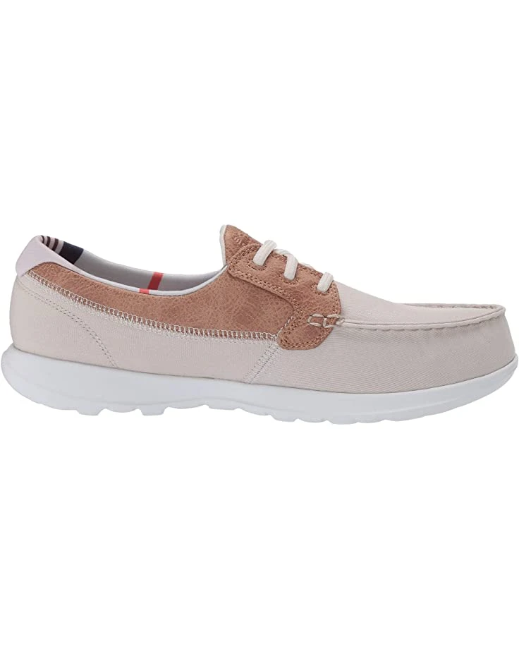 - The SKECHERS® Performance Go Walk Lite – Playa boat shoe will bring long-lasting comfort and iconic style to your everyday look with a canvas fabric upper, contrasting fabric overlays at the laces and collar, and a machine washable design.