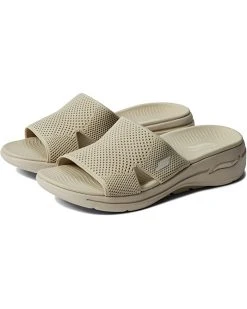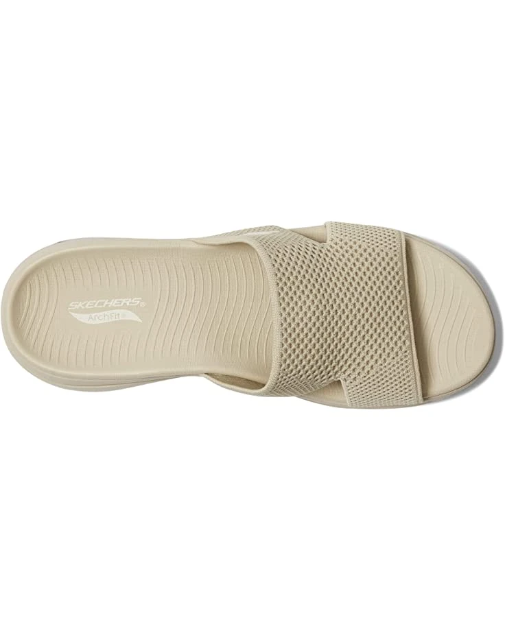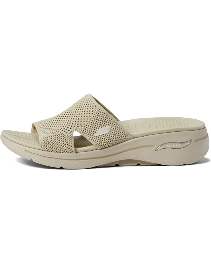 - Slide into instant comfort rocking the SKECHERS® Performance Go Walk Arch Fit Knit Slide. These sandals are perfect for those warm weather days as they have materials that give amazing support for all day wear. They’re super stylish and pair well with just about anything in the closet.