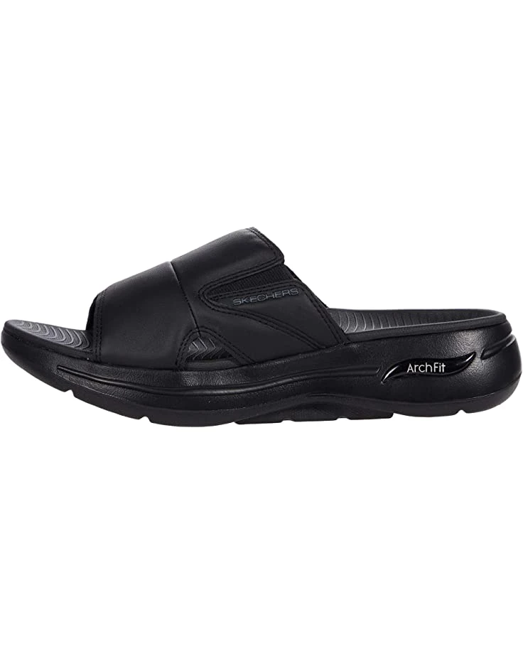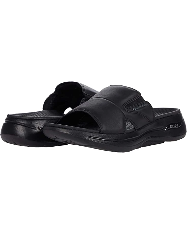 - The SKECHERS® Performance Go Walk Arch Fit Sandal – provides comfort and versatility with easy slip-on styling and boasts a sleek, outdoorsy finish that features High-rebound Comfort Pillar Technology® for added support as well as a breathable mesh upper with side cutouts for both fashion and utility.
