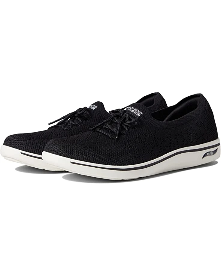 - Drop in and bliss out wearing SKECHERS® Performance Arch Fit Uplift Knit Lace-Up footwear for a casual outing.