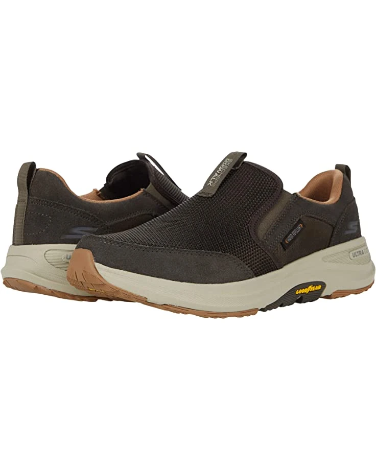 - The SKECHERS® Performance Go Walk Outdoors – 216103 sneaker provides comfort and versatility with easy slip-on styling and boasts a rugged, outdoorsy finish.