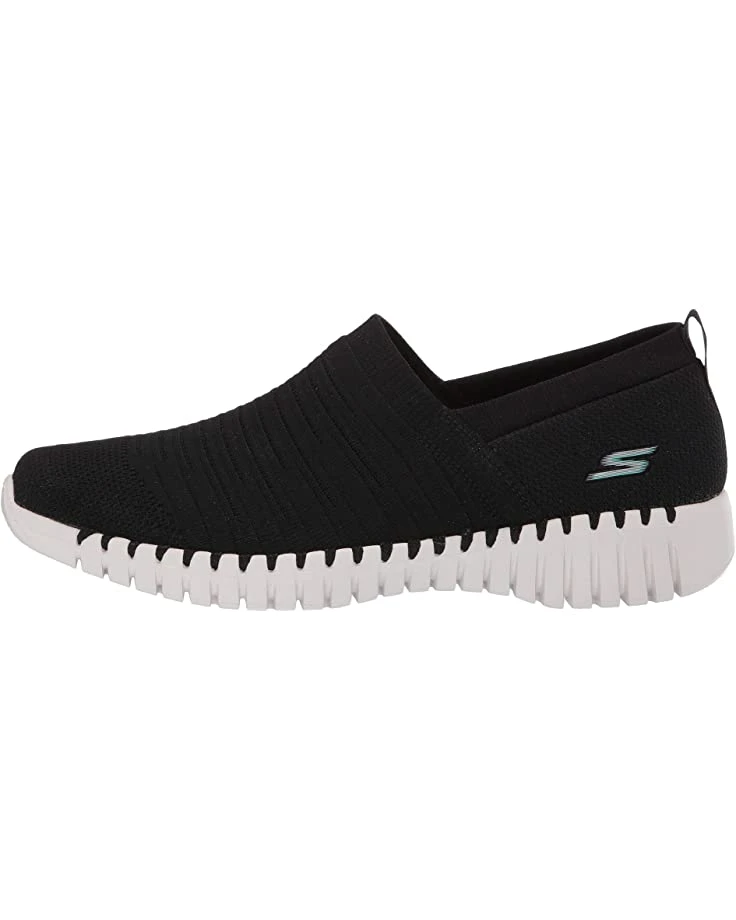 - The SKECHERS® Go Walk Smart – Wise walking shoe will ensure that you stroll in style with an engineered flat knit mesh fabric upper, machine washable design, and easy slip-on styling.