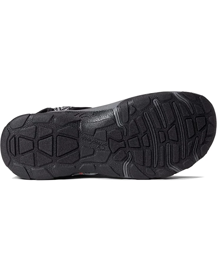 - Strappy outdoor trail sandal design with adjustable strap closure.