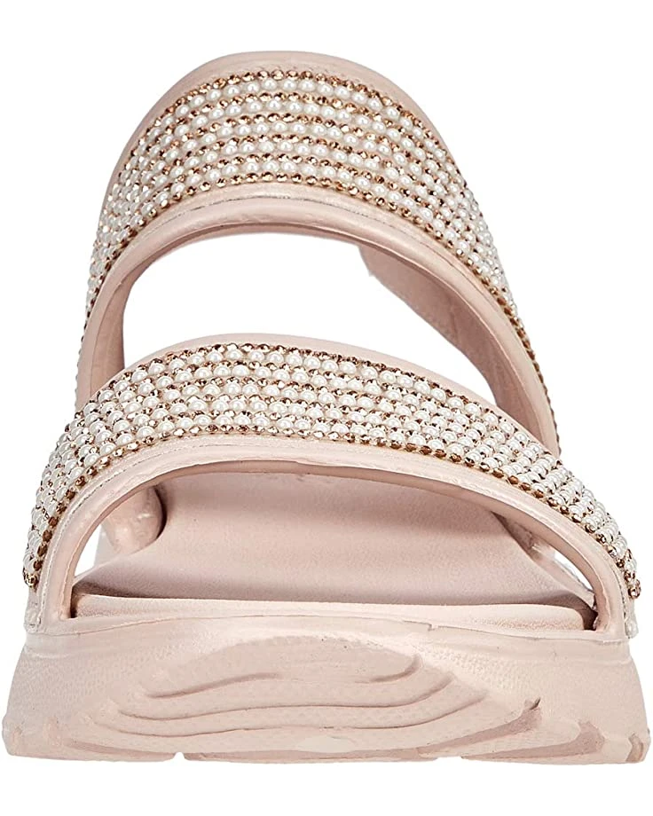 - Add a little glitter to your warmer weather aesthetic in the SKECHERS® Foamies Footsteps – How Extra, featuring a classic slip-on style sandal with hook-and-loop closures at heels. Available in three color options.