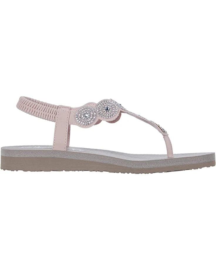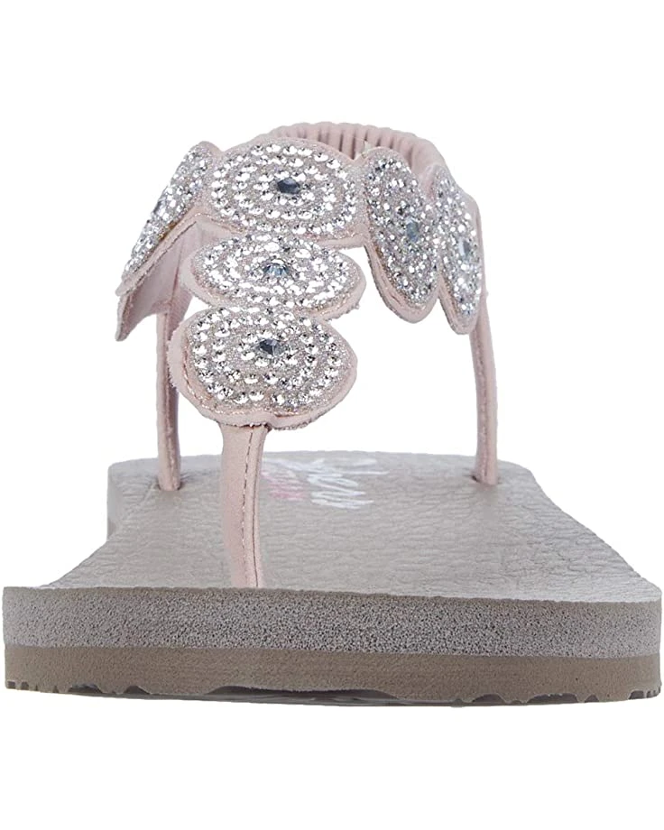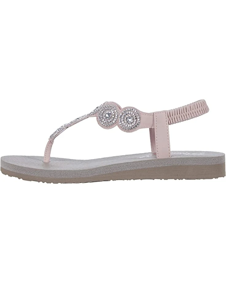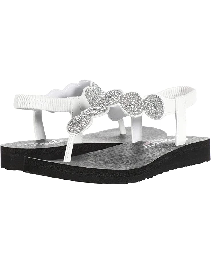 - The SKECHERS® Meditation – Stars & Sparkle sandal fuses chic style and premium comfort with a rhinestone-embellished synthetic upper, thong-style silhouette, and cushioning for all-day wear.