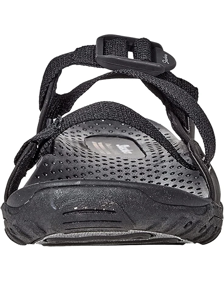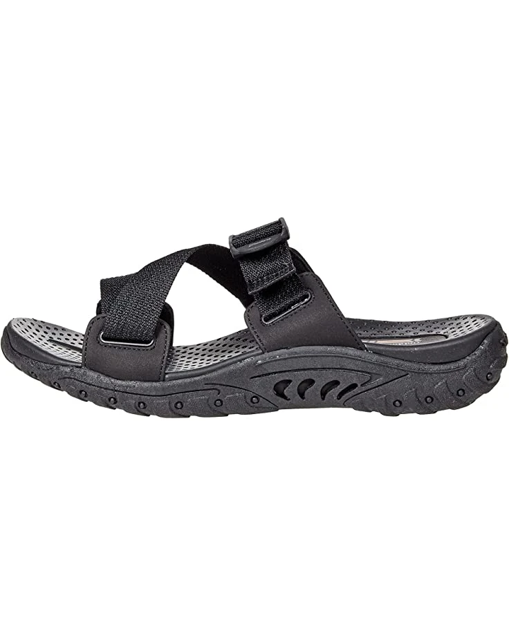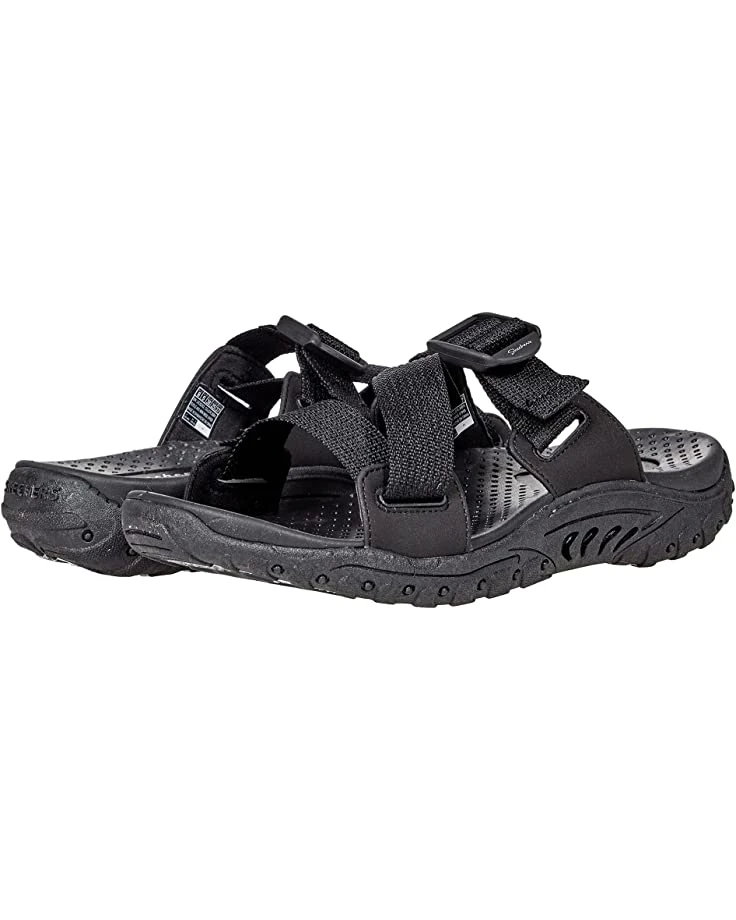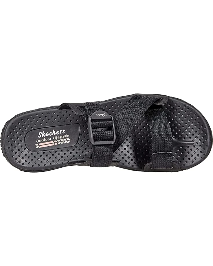 - Greet the outdoors in the comfortable SKECHERS® Reggae – Quick Hello in a round, open toe silhouette.
