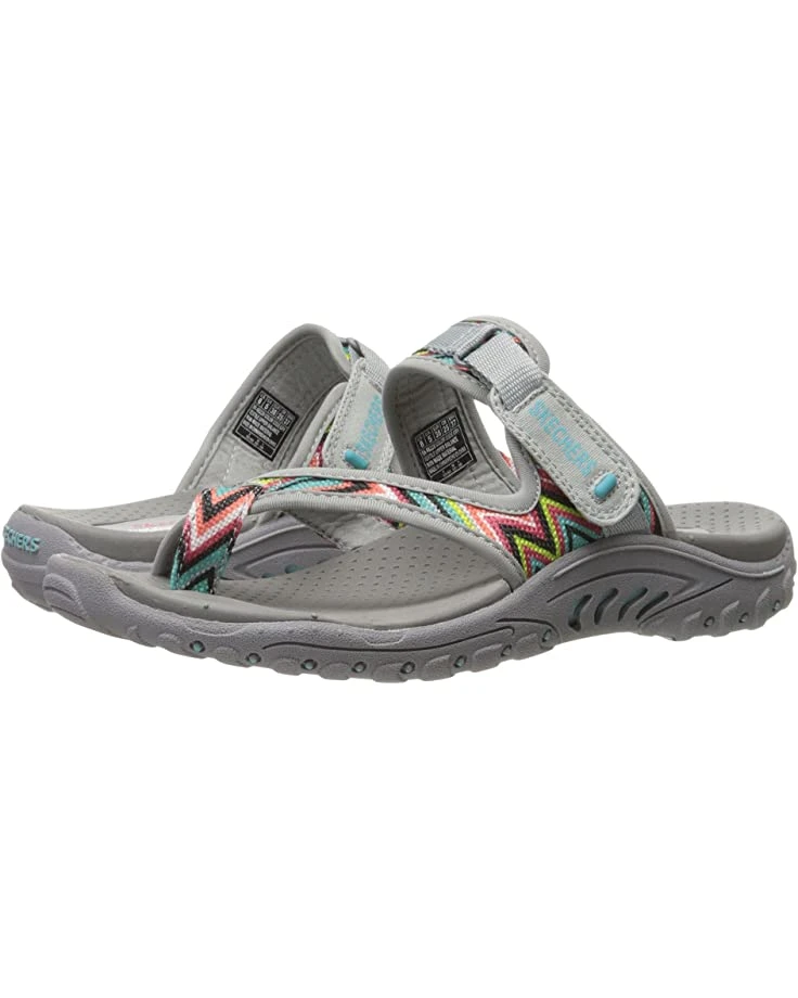 - The SKECHERS® Reggae – Zig Swag sandal will elevate your beachy style with a woven canvas fabric upper, colorful zig-zag print, and an easy slip-on construction.