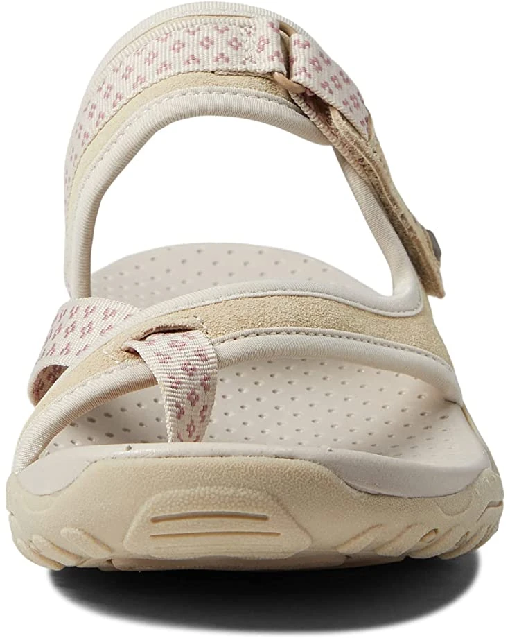 Great comfy sandal. LOVE the toe loop, the only type of sandal sturdy enough.
