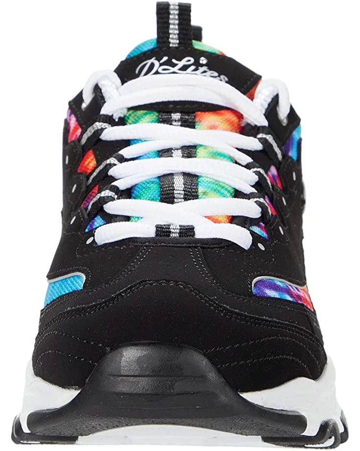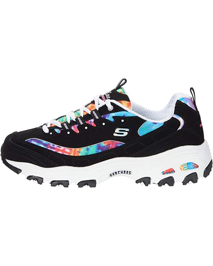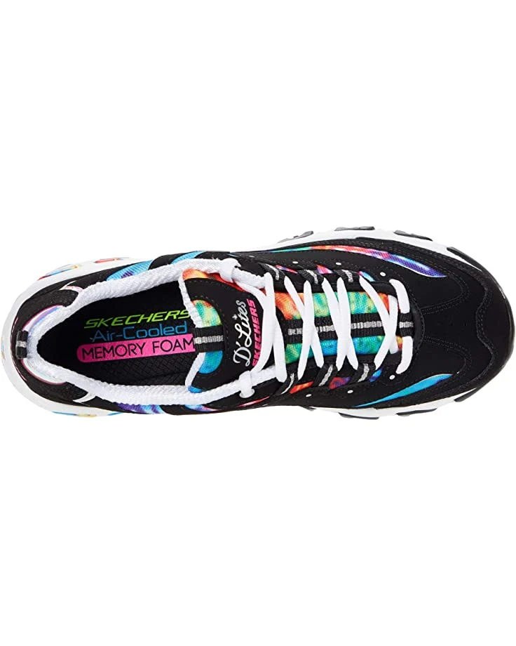- The SKECHERS® D’Lites – Summer Fiesta sneaker offers a feminine design and lasting comfort with an athletic-inspired silhouette, colorful synthetic panels, and comfortable padding at the tongue and collar.