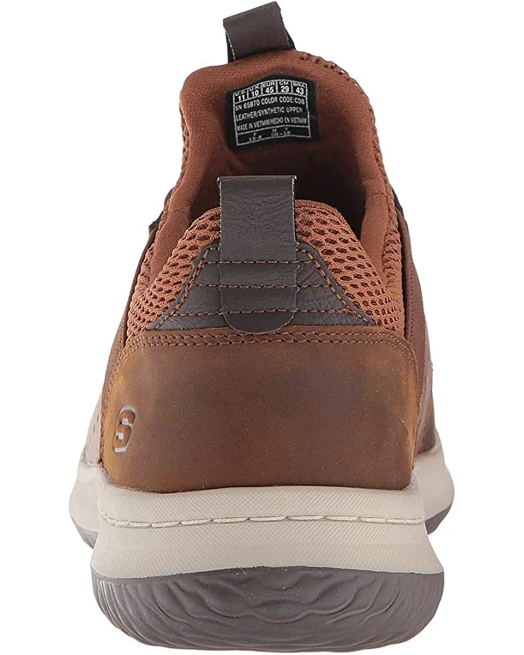 - The SKECHERS® Delson – Axton sneaker exudes authentic charm with an oiled leather upper, mesh fabric at the intep and collar, and premium cushioning.