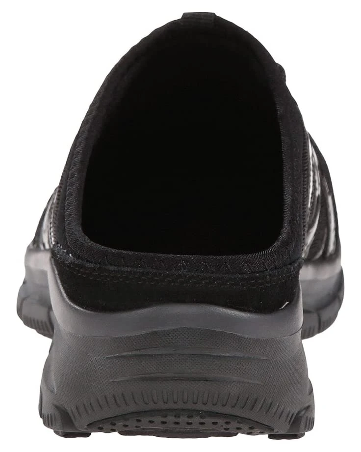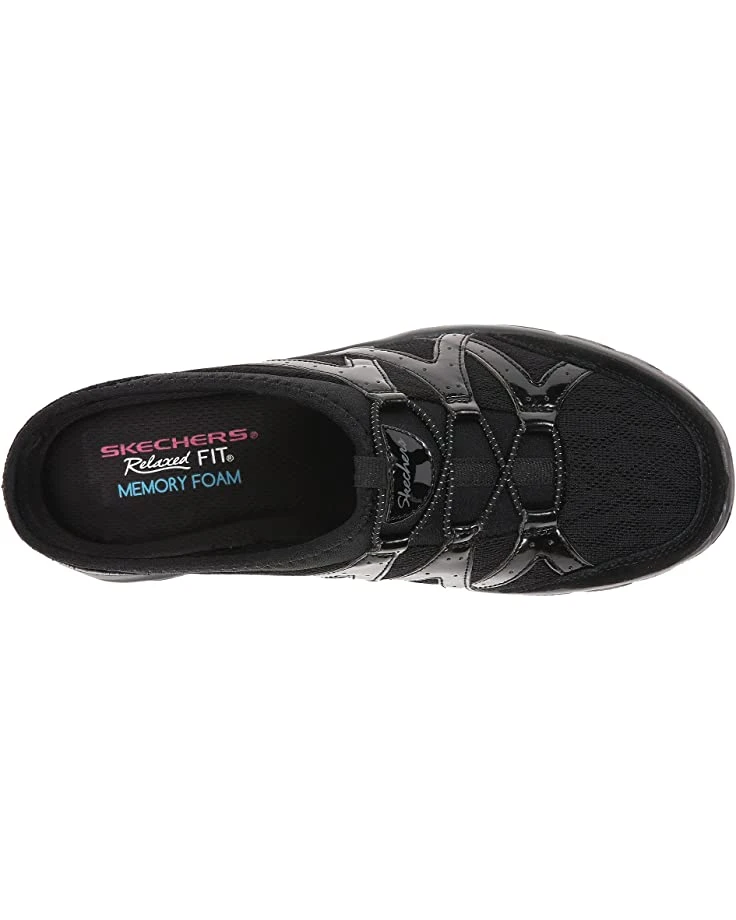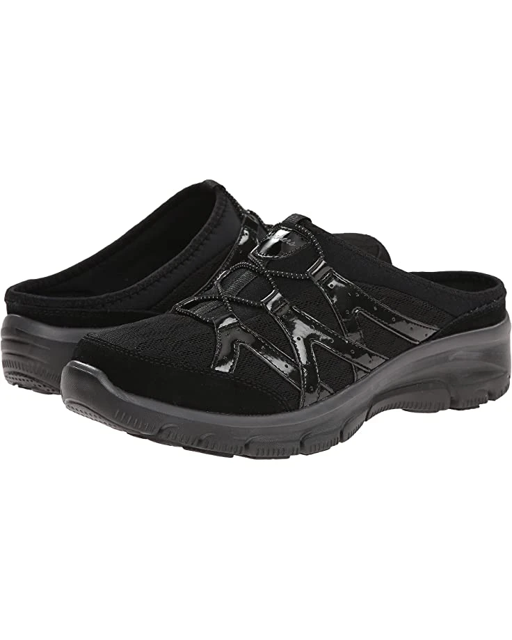 - The SKECHERS® Easy Going – Repute mule lets your day go smoothly with its lightweight and supportive design, textile upper, and durable synthetic overlays.