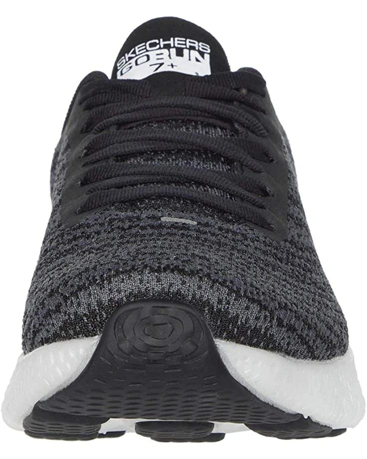 - The SKECHERS® Go Run 7+ running sneaker combines comfort and style with a sporty two-tone design, circular knit fabric upper, and supportive cushioning.
