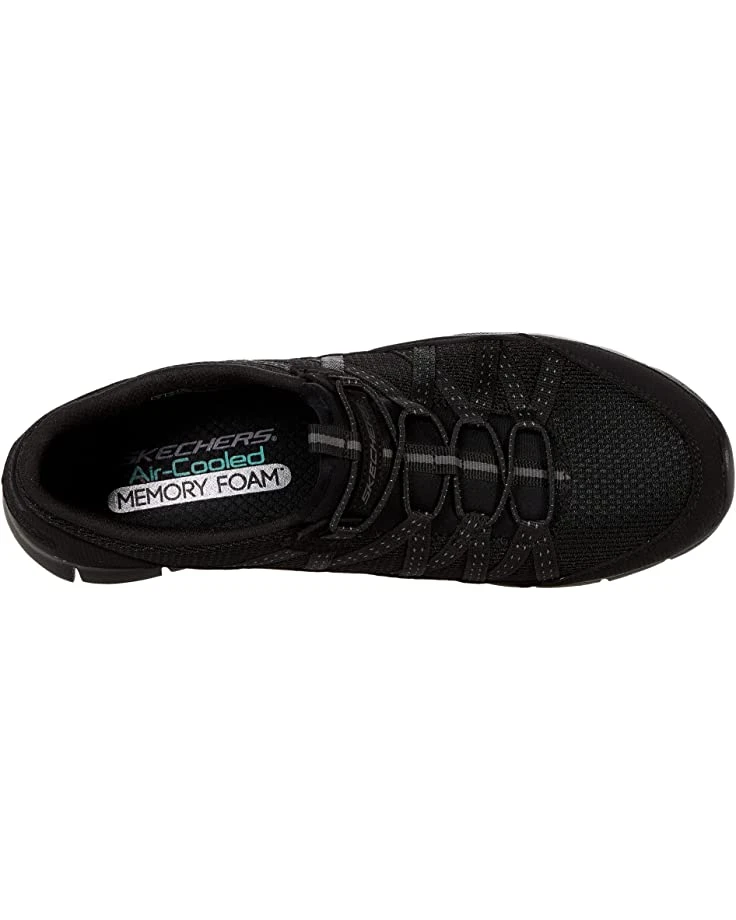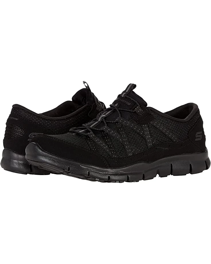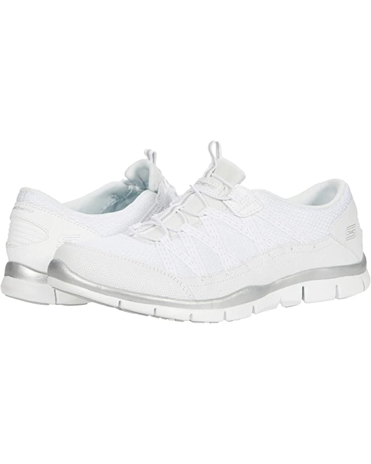 - The SKECHERS® Gratis – Strolling sneaker will invigorate your casual style with a perforated synthetic and cooling mesh upper, slip-on styling, and a bungee laced front panel for a secure fit.