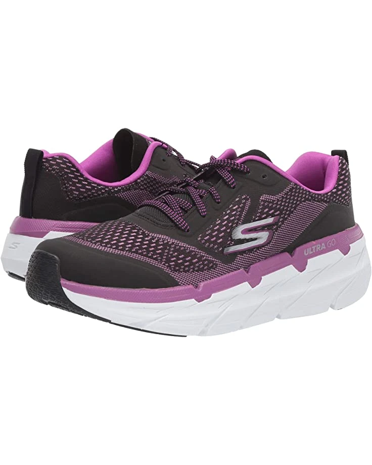 - The SKECHERS® Max Cushion – 17690 sneaker will elevate all of your runs with a woven finish, optimal cushioning, a contrast colored midsole, and a platform silhouette.