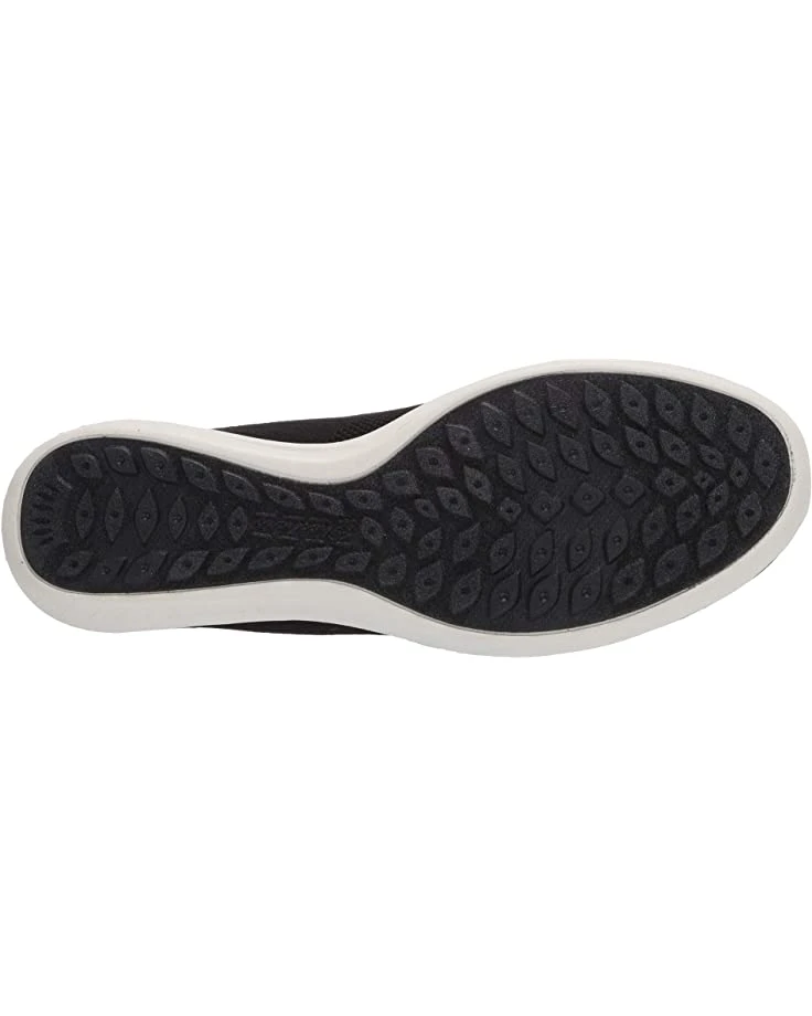 I love these shoes because they offer excellent support for the foot – especially arch support. I have average to high arches and support is critical for walking any length of time. The upper fabric is a stretch fabric that also feels supportive without being too firm and squeezing the foot uncomfortably. I also very much like the trim design of the shoe. Nothing is worse than dressing nicely for the day and having to put on clunky outsized looking sneakers! These are overall a terrific shoe!