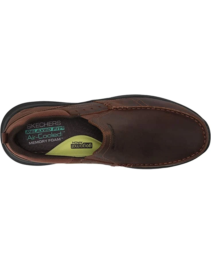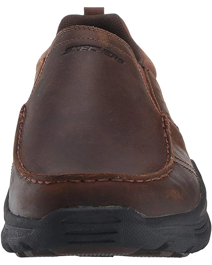 - The SKECHERS® Relaxed Fit Expended – Seveno loafer combines casual comfort and sleek style with an oiled leather upper, matte finish, durable overlays, and moc-style aesthetic.