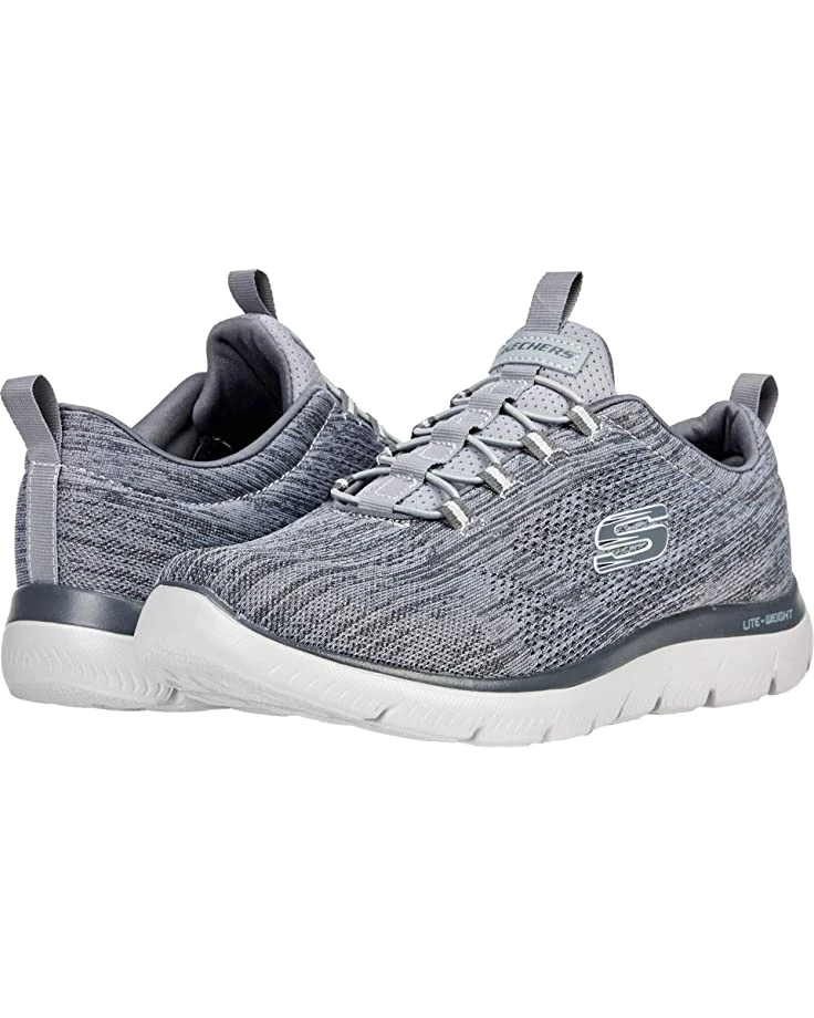 - The SKECHERS® Summits Louvin sneaker will complete your sporty-chic look with an engineered knit mesh fabric upper, a heathered finish, and optimal comfort features.