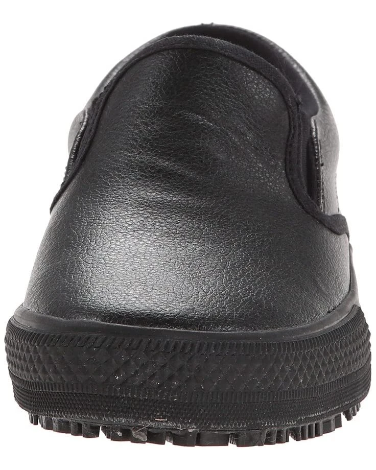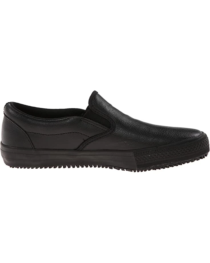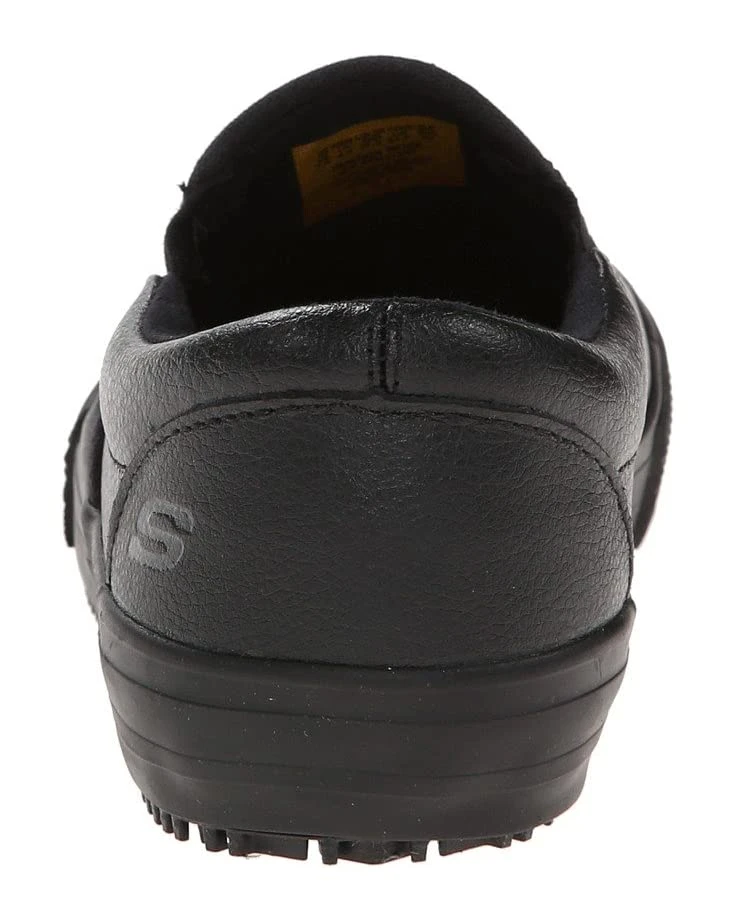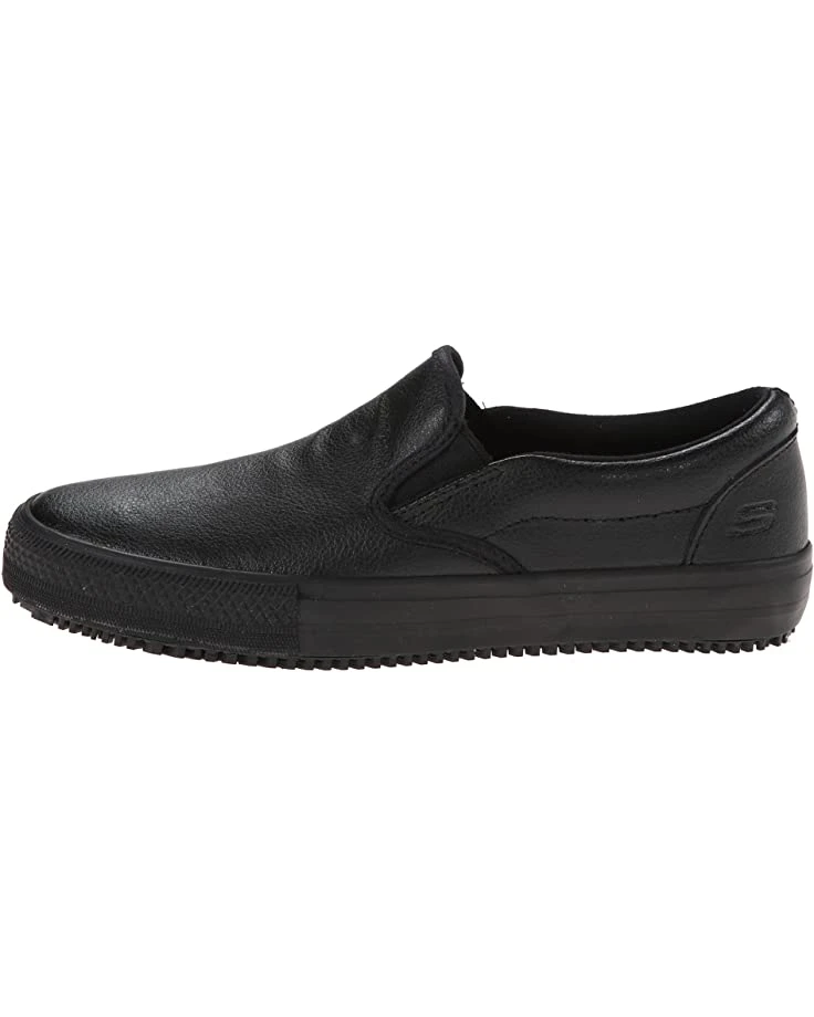 - The Gibson-Brognay from SKECHERS® Work has an easy slip-on shoe that will keep you safe and steady on the job with its durable leather construction and slip-resistant outsole.