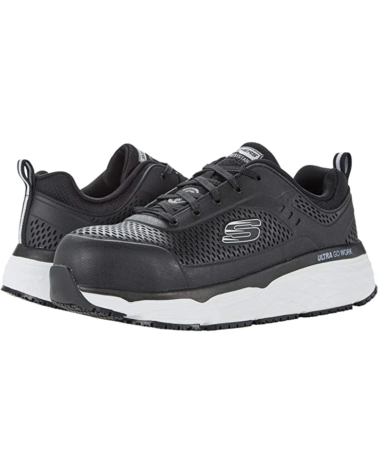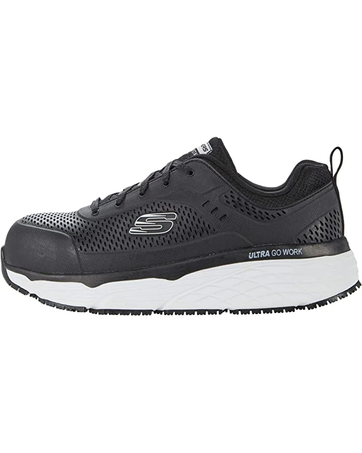 - Ideal for standing and walking for extended periods of time, the SKECHERS® Max Cushioning ELITE SR – Indurite Alloy Toe is going to help get the job done. Featuring an athletic design and supreme cushioning that provides all day comfort.